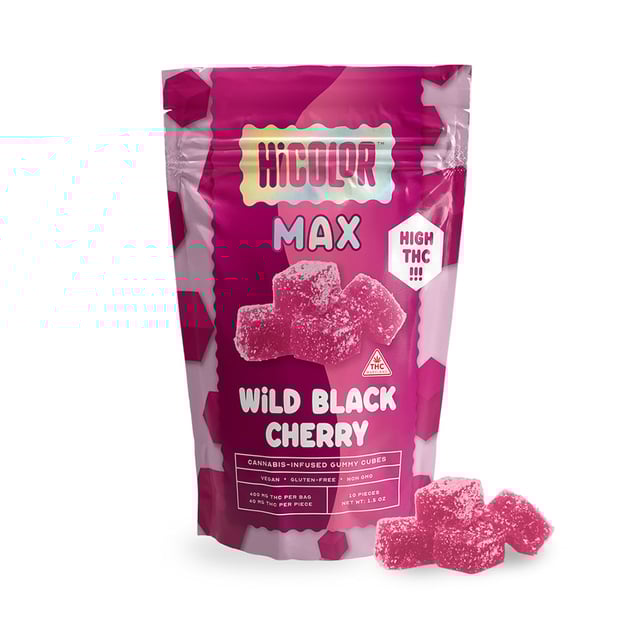 HiCOLOR Wild Black Cherry MAX Gummies are not only the best-tasting black cherry gummy in Maryland, they also the highest potency. HiCOLOR is your one-stop shop for cannabis-infused delights. Highest quality edibles that are precision-dosed, vegan, non-GMO, and made with natural flavors.