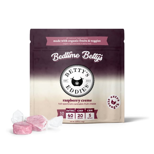 ![Bedtime Betty's Raspberry Creme [10pk] (400mg THC/200mg CBD/50mg CBN) Sleep Fruit Chews - Image 1 Bedtime Betty's Raspberry Creme [10pk] (400mg THC/200mg CBD/50mg CBN) Sleep Fruit Chews - Image 1](https://product-assets.iheartjane.com/cdn-cgi/image/width=644,fit=scale-down,format=auto,metadata=none/photos/4e/af/4eaf5efd-cfc3-482d-9f7c-ee8f716308db.jpeg)