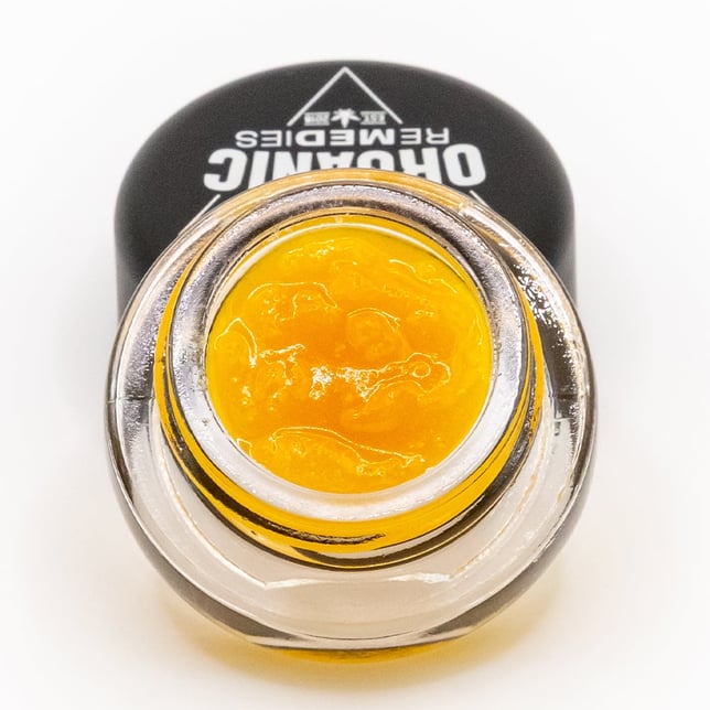 A three-way in-house blend of the "Pablo's Revenge", "Grape Gas", and "Tenacious #4" strains was used to create this sativa-leaning hybrid concentrate with a unique aromatic blend of earthy spices, citrus fruits, and floral undertones.