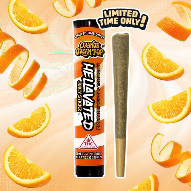 Orange Cream Pop is a blast from the past with a Hellavated twist - bright, juicy orange layered over silky vanilla cream for that dreamy, melt-in-the-sun flavor you know and love.